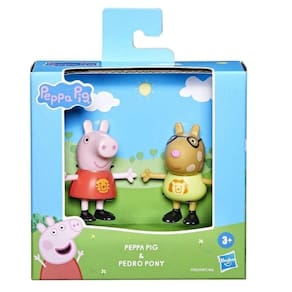 Este conjunto vem com dois personagens a Peppa Pig e o Pedro Pony. Eles tem designs temáticos exclusivos em suas camisetas para que as crianças possam colecionar seus personagens favoritos com um novo visual. Peppa tem um tigre desenhado em sua roupa e o Pedro Pony tem um leão, então as crianças podem imaginar que os amigos irão passear no zoológico. As crianças podem imaginar muitas aventuras com a Peppa e seus amigos.