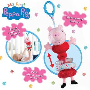 Peppa Pig - Minha Primeira Pelúcia 19Cm - Mobile - Sunny 002335 O móbile de pelúcia perfeito para estimular a curiosidade e independência dos mais pequenos Ele é feito de pelúcia com textura suave, cores com padrões atraentes para agradar aos mais pequenos, assim como o recurso de chocalho e as diferentes superfícies multi-texturizadas. Puxe a parte inferior do móbile e observe enquanto ele balança e retrai. O clipe é fácil de prender em caminhos de bebê, berços, assentos de carro e muito mais, para brincar em qualquer lugar