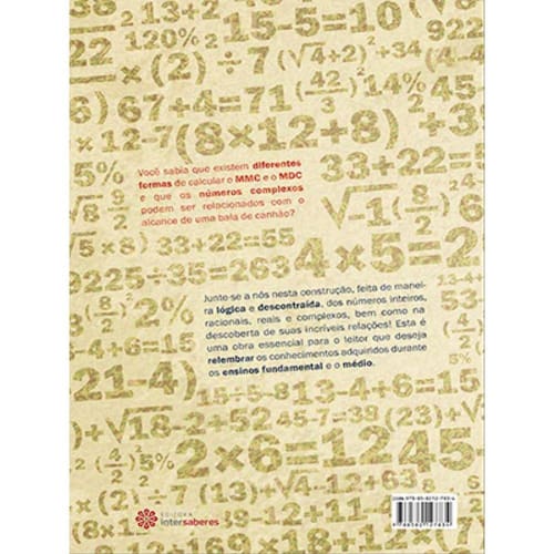 Você sabia que existem diferentes formas de calcular o MMC e o MDC e que os números complexos podem ser relacionados com o alcance de uma bala de canhão? Junte-se a nós nesta construção, feita de maneira lógica e descontraída, dos números inteiros, racionais, reais e complexos, bem como na descoberta de suas incríveis relações! Esta é uma obra essencial para o leitor que deseja relembrar os conhecimentos adquiridos durante os ensinos fundamental e o médio. Ean: 9788582127834