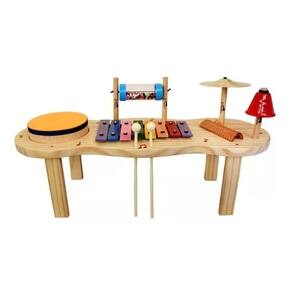 - 01 metalofone 8 teclas coloridas afinadas do á do natural - 01 prato - 01 reco-reco - 01 sininho - 01 ganza cristal com bolinhas coloridas - 01 tambor com pele em madeira/eva - 02 baquetas Medidas aproximadas -altura: 18 cm -largura: 24cm -comprimento: 66cm Prepare suas crianças para o futuro com instrumentos musicais. Brinquedo pedagógico e educativo. Marca: Não Informado