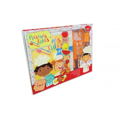 Este kit traz mais de 80 receitas para os pequenos chefs, além de um dicionário culinário, um pouco sobre os alimentos e suas vitaminas, dicas sobre como ler uma embalagem e muito mais! Descubra tudo o que você precisa saber para criar refeições deliciosas e perfeitas para cada ocasião e, com a ajuda de um adulto, invente as suas próprias variações! Inclui ainda tudo o que você precisa para ser um chef de verdade: rolo para massa, cortadores, espátula, avental e touca. Marca: DCL DIFUSAO CULTURAL Ean: 9786556582511