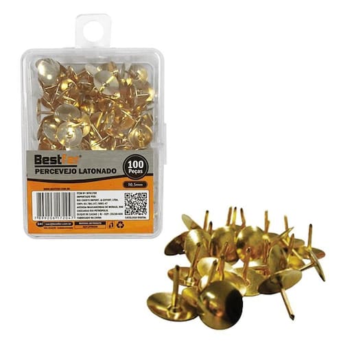 O Percevejo Latonado da Bestfer possui tratamento anti ferrugem e é ideal para a fixação em diversas situações como fixar anúncios em quadros, decorações em festas tecidos em banquetas. Um produto multitarefa e indispensável nos melhores escritórios