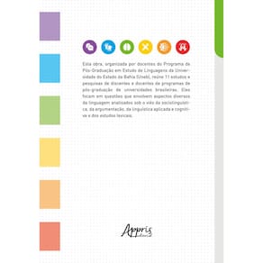 Esta obra, organizada por docentes do Programa de Pós-Graduação em Estudo de Linguagens da Universidade do Estado da Bahia (Uneb), reúne 11 estudos e pesquisas de discentes e docentes de programas de pós-graduação de universidades brasileiras. Eles focam em questões que envolvem aspectos diversos da linguagem analisados sob o viés da sociolinguística, da argumentação, da linguística aplicada e cognitiva e dos estudos lexicais.