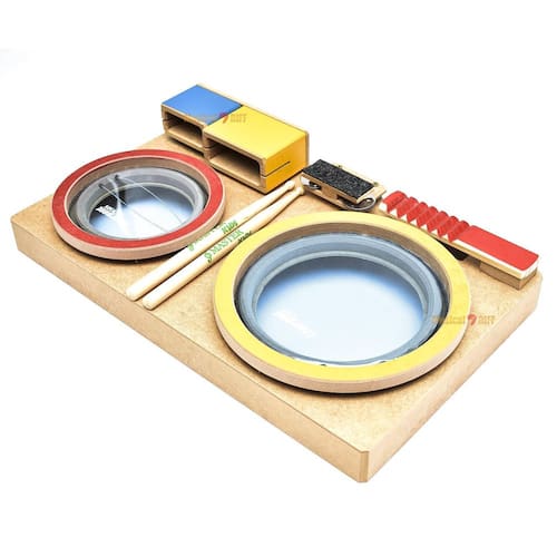 Percuteria infantil 2 tambores reco reco pandeirola Descrição do produto: Muito Utilizado na primeira infância auxiliando pais e profissionais na musicalização infantil, introduzindo musica logo nos primeiros anos de vida. Pode ser Utilizado a partir de 1 ano de vida da criança. - características: Marca: liverpool A percuteria é uma estação musical. São vários instrumentos de percussão reunidos formando uma fanfarra compacta Muito som e diversão garantida. A percuteria mafagafo contém: -caixa/tarol -tambor -bloquinhos sonoros par -reco-reco -pandeirola -1 par de baquetas Em madeira e mdf, peles sintéticas de bateria e tinta a base d'àgua. Altura: 13.00 cm Largura: 30.00 cm Comprimento: 50.00 cm Peso: 2,5kg aproximados : 3 meses Ean: 7897937442576