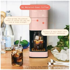 A Perfect Grind Rose é uma máquina de café drip single serve com moedor burr integrado que processa grãos inteiros para preparos de 177 a 473 ml (6-16 oz), com opções de força regular, bold ou over ice, e reservatório removível de 1,89 L para múltiplos preparos diários. Suporta café quente ou gelado via display touch programável com timer para auto-brew matinal, eliminando necessidade de pods descartáveis.