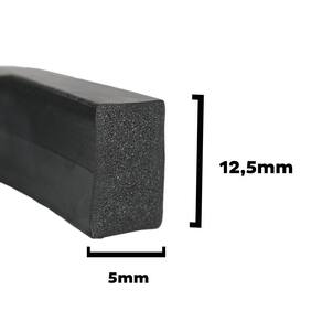 Especificações Técnicas: - Material: Borracha - Cor: Preto - Comprimento: 10 metros - Altura: 15 - Largura: 6 - Peso: 0.29 - Acessórios incluídos: Não - Garantia do fabricante: 3 meses - Produto: Perfil de borracha esponjoso 12,5mmx5mm - Uso indicado: Vedação, acabamento, amortecimento - Diâmetro: 12,5mmx5mm