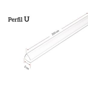 Perfil de policarbonato com 2,10 metros de comprimento, utilizado na parte frontal da cobertura em policarbonato de 6mm, ele se encaixa nas placas evitando a entrada de água ou sujeiras em seus alvéolos.