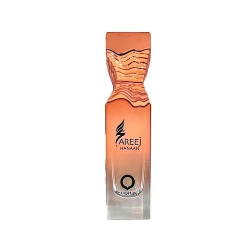 O frasco do Areej Hanaan é uma manifestação visual da feminilidade e da elegância. Com linhas curvas e um acabamento em tons de ouro e rosa, ele reflete a suavidade e a beleza da fragrância que ele contém. A tampa ornamentada e os detalhes delicados no frasco são um testemunho do cuidado artesanal por trás dessa criação.