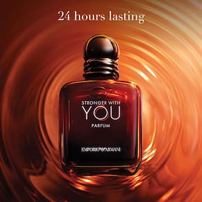 - A icônica garrafa de vidro Stronger With You segue linhas fortes e curvas que lembram os ombros masculinos. É coberto com o boné cinza metálico característico.