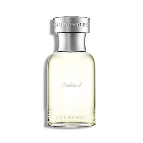 Eau de Toilette Burberry Weekend para homens, 1 fl oz — A nectarina, uma flor de pêssego, cria uma nota de topo frutada e floral que é reforçada pela mignonete de flores mediterrâneas. - A base é que as notas florais do buquê incluem rosa mosqueta, íris, jacinto e raiz violeta. - A base de cedro e almíscar fornece uma base firme para esses aromas delicados.