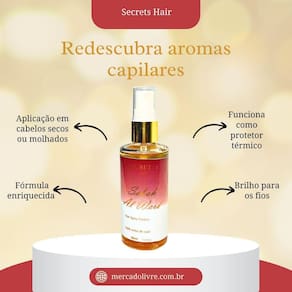 Perfume capilar secrets hair 60ml-p/ qualquer tipo de cabelo Aroma: sabah Perfume capilar secrets hair - sofisticação para seus fios O perfume capilar secrets hair oferece a combinação perfeita entre fragrância marcante e cuidados para o cabelo. Inspirado nas mais renomadas fragrâncias do mercado, esse produto transforma seus fios com um aroma suave e duradouro, mantendo-os perfumados e refrescantes o dia todo. Além de proporcionar um perfume irresistível, o produto também oferece proteção térmica, hidratação e brilho intenso. O que você irá receber 01 perfume capilar secrets hair 60ml Benefícios - perfume duradouro e delicioso - hidratação profunda para seus fios - proteção térmica contra ferramentas de calor - brilho intenso e natural Características - versatilidade de uso: pode ser em cabelos secos ou úmidos, adaptando-se à sua rotina. - fórmula nutritiva: enriquecido com ingredientes que nutrem e hidratam os fios. - perfume marcante: fragrância inspirada nas mais renomadas do mercado, garantindo frescor e sofisticação. - proteção contra danos: ação de proteção térmica contra danos causados por secadores e chapinhas. Marca: Não Informado Ean: 7891248075058
