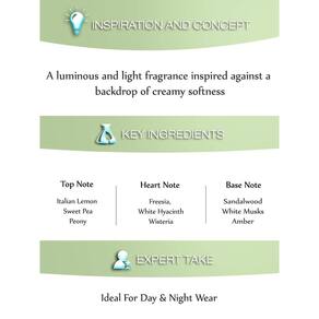 - O Perfume é fresco – o – Suave e floral, abertura com notas de limão, e doces Peony italiano.