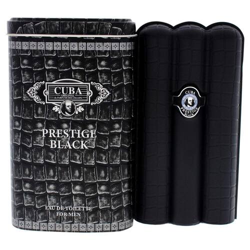 Spray EDT Cuba Cuba Prestige Black Men de 3 onças - Lançado pela casa de design de Cuba - Esta fragrância aromática amadeirada tem uma mistura de menta, pimenta, gerânio, coentro, lavanda, jasmim, cedro, musgo de carvalho e almíscar - É uma fragrância duradoura - Mantém você refrescante o dia todo - Aumente a atração e a fragrância agradável à pele.