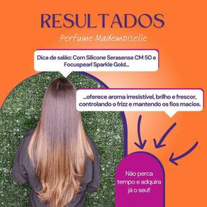 CONTÉM: 1 Perfume de Cabelo Mademoiselle 60ml DESCRIÇÃO: O Perfume de Cabelo Mademoiselle é uma fragrância sofisticada para os cabelos. Com Silicone Serasense CM 50 e Focuspearl Sparkle Gold, oferece aroma irresistível, brilho e frescor, controlando o frizz e mantendo os fios macios. MODO DE USAR: Borrife o Perfume de Cabelo Mademoiselle a uma distância de 20-30 cm dos cabelos secos, distribuindo uniformemente. Reaplique sempre que desejar refrescar a fragrância e o brilho dos fios. INDICAÇÃO: Para todos os tipos de cabelos, principalmente com frizz. RESULTADO: As partículas de Luminous proporciona inigualável brilho e um perfume irresistível aos fios. PRECAUÇÕES: Conserve em local fresco e ao abrigo da luz e do calor. Mantenha sempre fora do alcance de crianças e animais domésticos. Em caso de irritação suspenda o uso. Evite o contato com olhos e mucosas, caso ocorra lave com água em abundância. COMPOSIÇÕES: Cyclopentasiloxane/decametilciclopentasiloxano, parfum/fragrância, mica/mica, linalool/linalol, butylphenyl methylpropional /butilfenil metilpropional, titanium dioxide/dióxido de titânio, ci 77015/óxido de ferro vermelho, citronellol/citronelol, coumarin/cumarina. INFORMAÇÕES ADICIONAIS: Não testado em animais Cor do produto: dourado Posso usar o Perfume de Cabelo Mademoiselle diariamente R: Sim, geralmente o produto pode ser diariamente, conforme necessário. No entanto, é aconselhável seguir as orientações específicas do fabricante para obter os melhores resultados. Como o produto contribui para o brilho tridimensional nos cabelos R: O Perfume de Cabelo Mademoiselle desenvolve um brilho tridimensional nos cabelos, proporcionando um toque seco e luminosidade. Os Silicones Nobres presentes na fórmula podem contribuir para esse efeito. Quais são os principais benefícios do Perfume de Cabelo Mademoiselle durante a secagem R: Durante a secagem, o produto com polímeros de proteção e Silicones Nobres ajuda a reduzir o tempo de secagem, proporciona maciez aos fios e contribui para minimizar os danos causados pelo calor do secador. Marca: Não Informado Ean: 7908457410041