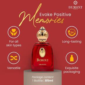 Dumont BOROUJ GRAVITY - 85 ml - Perfume unissex para homens e mulheres - Fragrância de madeira de ágar, baunilha, amadeirado e almíscar - névoa de colônia e spray corporal de longa duração - para ele