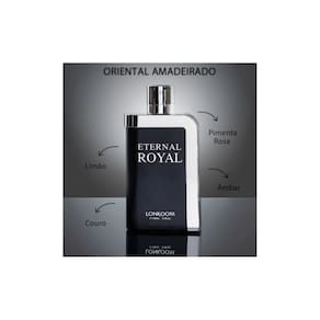 Somos apaixonados por perfumes e um dos grandes prazeres para nós, é poder elaborar fragrâncias que farão parte de sua vida. Cada detalhe é pensado e criado com o compromisso de te surpreender e desde 1996, surpreendemos a muitos! Hoje, temos mais de 200 fragrâncias espalhadas pelo mundo em países como: França, Dubai, EUA, Arábia Saudita, Brasil, entre outros. Conheça os perfumes de sucesso da Lonkoom e descubra o que melhor combina com você. Indicação: Ideal para todos os tipos de pele Ideal para todos que desejam ficar cheirosos e Contemporâneos. Eternal Royal Eau de Toilette da Lonkoom Parfum é uma fragrância que marca, provoca e exala jovialidade e carisma. Eternal Royal foi criado para um homem provocador com instintos aguçados e vai atrás dos objetivos sem medo. Jovem e moderno, antenado com o mundo é carismático e tem atitude! A fragrância: Oriental amadeirado é um perfume marcante, inovador e atraente. Nas notas de saída a pimenta rosa destaca-se por seu aroma intenso. No seu corpo a Flor de laranjeira, dá o equilíbrio harmônico entre todas as notas. O Cedro na sua base deixa a fragrância mais sofisticada e nobre. O frasco: Frasco com inspiração em cantil, porta bebida. Modo de Usar: • Aplique nas partes quentes do corpo, como pulso e pescoço.
