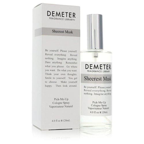 Deméter Sheerest Musk Perfume de Demeter, Demeter Sheerest Musk é uma fragrância unissex lançada pela Demeter Fragrance Library em 2017. Como parte da coleção de estúdio de almíscar branca da gravadora, esta mistura simples apresenta uma nota de almíscar que é leve e em pó, com sabão e penhores cerdos. Demeter combina magistralmente esse almíscar com notas florais, criando um perfil de perfume encorpado que é suave e puro.