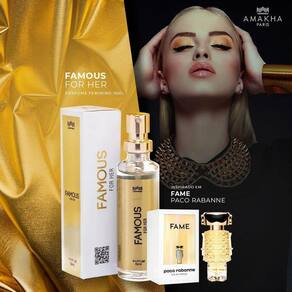 Descrição do produto Descubra famous for her, a nova fragrância feminina da amakha paris. Capturando a irresistível essência do espírito parisiense da mulher, famous for her realiza um tributo a nova era da feminilidade. Divertida, sensual e empoderada. A fragrância é um mix de jasmim puro, manga com um toque de sensualidade, de incenso cremoso. Um perfume ultra desejável com um audacioso design. Ousado adorna-se, com sombras vanguardistas, refletindo desejo.