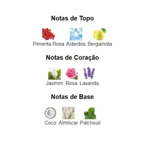 Notas de Coração: Jasmim, Rosa e Lavanda.