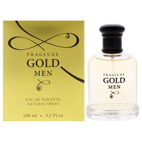 — Spray EDT Gold da Fragluxe para homens, uma fragrância ousada e carismática.