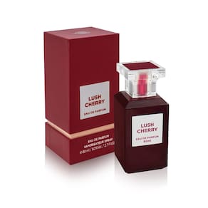 Fragrance World — Lush Cherry Eau De Parfum - Perfume unissex de 80 ml | Perfume de nicho de luxo fabricado nos Emirados Árabes Unidos - Lush Cherry, uma fragrância insaciável criada como uma reminiscência de cereja suculenta, apresenta um perfume de luxo delicadamente equilibrado para homens e mulheres. - O brilho doce do exótico licor de cereja preta tingido com a sedutora amêndoa amarga do Lush Cherry dá lugar a uma mistura de sambac de rosa turca e jasmim que desperta os sentidos. Experimente as frutas proibidas com um toque de bálsamo peruano, tonka assada, sândalo, vetiver e cedro. - Insaciante, mas satisfatória, essa mistura contraditória para homens e mulheres vem em um frasco vermelho chique, entrando de forma brilhante no mundo de fantasia de fragrâncias suculentas e dando a ela uma aparência de perfume luxuoso para homens e mulheres. - Impossível de resistir, este perfume unissex parece uma bebida extática pronta para encher os sentidos de imensa alegria, o melhor presente de perfume para homens e mulheres que complementa seus encantos.