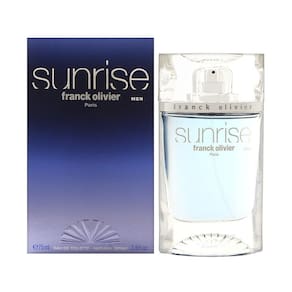 Spray Franck Olivier Sunrise Eau de Toilette para homens, 2,5 onças - Sunrise Men da Franck Olivier é uma fragrância aromática amadeirada para homens - Sunrise Men foi lançada em 2010. - As notas de topo são bergamota, mirto e lavanda; as notas médias são jasmim, folha de violeta e sálvia; as notas de base são sândalo, âmbar e fava tonka