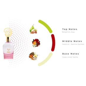 Composição exclusiva: apresenta uma combinação distinta de bergamota, pera, olíbano e avelã, Rosa, jasmim, sambac, baunilha e madeira de cedro - Design do frasco: embalado em um frasco de spray elegante e fácil de usar para uma aplicação conveniente - Notas principais: pera, olíbano e bergamota. Notas médias: baunilha e cedro. Notas de base: avelã, jasmim, sambac e rosa