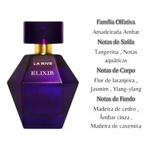 O Perfume La Rive Elixir é uma fragrância que revela o mistério e a sedução em cada borrifada. Criado para mulheres sofisticadas, este perfume é a escolha perfeita para quem deseja destacar sua personalidade forte e encantadora. Com uma combinação única de notas Amadeirada Ambar, o La Rive Elixir envolve você em uma aura irresistível de elegância e charme.