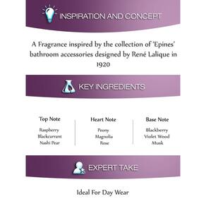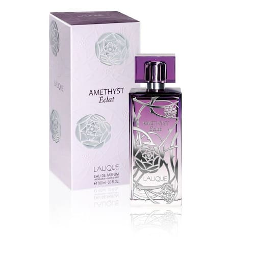 Lalique Amethyst Eclat para mulheres, 3,3 fl oz — Groselha preta, pera Nashi e framboesa — Peônia, rosa e magnólia — Violace oxalis, amora e almíscar sensual — A embalagem do produto pode variar — 3,4 onças fluidas — Para mulheres — Spray Eau de parfum