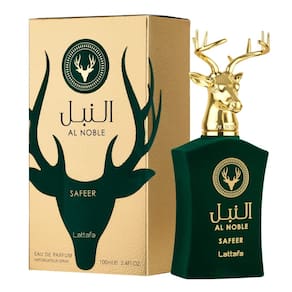 Da casa da Lattafa Perfumes vem o aroma quente, picante e amadeirado de Safeer, uma fragrância fresca para mulheres e homens. No início, há notas de bergamota e artemísia, enquanto as notas de ervas, verdes e especiarias enchem o coração. A base consiste em notas de patchouli, olíbano, ládano, madeira guaiac, zimbro e nozes.