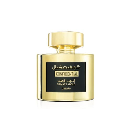 - Confidential Private Gold da Lattafa Perfumes é uma fragrância frutada para mulheres e homens