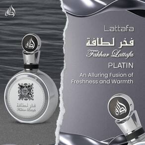 A platina Fakhar da Lattafa Perfumes é uma fragrância aromática Fougere para homens e mulheres. Esta é uma nova fragrância. A Fakhar Platin foi lançada em 2025. As notas de topo são bergamota, cardamomo e pimenta rosa; as notas de coração são goiaba, gengibre e lavanda; as notas de base são Palo Santo, sândalo e incenso.