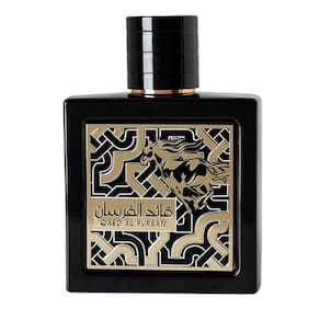 Perfumes Lattafa Qaed Al Fursan para spray unissex de eau de parfum, 3 onças - Qaed Al Fursan da Lattafa Perfumes é uma fragrância aromática - Esta fragrância clássica para homens e mulheres - As notas principais são frutas silvestres, maçã, alcatrão de bétula, notas amadeiradas e bergamota - As notas médias são notas amadeiradas, patchouli, rosa, notas florais e jasmim - As notas de base são almíscar, musgo de carvalho, âmbar e baunilha
