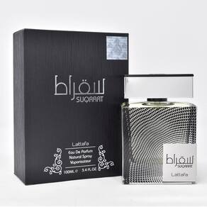 Lattafa Perfumes Suqraat for Men Eau de Parfum Spray, 3,4 onças - Suqraat da Lattafa Perfumes é uma fragrância aromática para homens. - Notas principais: bergamota e gengibre. - Notas médias: folhas de violeta e lavanda. - Notas de base: sândalo, âmbar e almíscar. - Tem uma fragrância de longa duração.