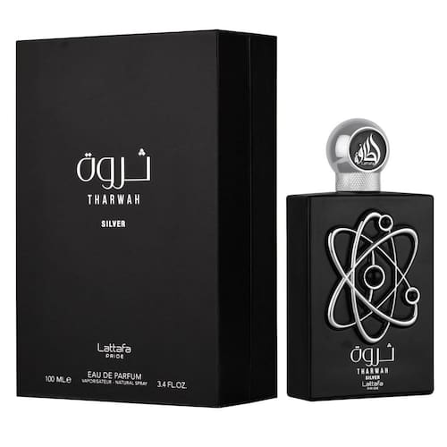 Lattafa Perfumes Tharwah Silver para spray de eau de parfum unissex, 3,4 onças - Tharwah Silver da Lattafa é uma fragrância fresca para homens e mulheres - Notas principais: menta, bergamota - Notas médias: sálvia, lavanda - Notas de base: cedro, almíscar, vetiver - Adequado para uso diário