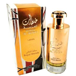 Lattafa Prestige Khaltat Al Arabia para spray unissex de eau de parfum, 3,4 onças - Khaltaat Al Arabia Royal Blends da Lattafa Perfumes é uma fragrância âmbar picante - Esta é uma nova fragrância para homens e mulheres - As notas principais são frutas e maçã - As notas médias são especiarias, noz-moscada e cravo - As notas de base são âmbar, almíscar e amadeirado