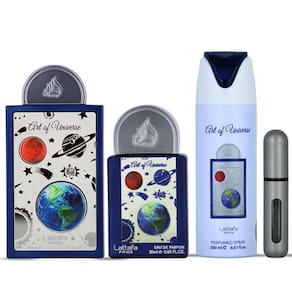 Lattafa Pride Art Of Universe para Unisex, set de regalo de 3 piezas con 100 ml EDP + 20 ml EDP + 200 ml desodorante. Art Of Universe de Lattafa Perfumes es una fragancia cítrica aromática para mujeres y hombres. Art Of Universe fue lanzada en 2025. Las notas de salida son mandarina, bergamota, jengibre y menta; las notas de corazón son pera y flor de azahar; las notas de fondo son almizcle, ámbar y cedro. - ¡Nuevo lanzamiento 2025! - Set de regalo Lattafa Pride Art Of Universe de 3 piezas - EDP 100 ml + EDP 20 ml + Desodorante 200 ml Unisex - Notas de salida: mandarina, bergamota, jengibre y menta - Notas de corazón: pera y flor de azahar - Notas de fondo: almizcle, ámbar y cedro