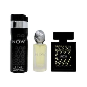 Conjunto de 3 peças Lattafa Rave Now para homens (spray Eau de Parfum de 3,4 onças, spray de cabelo de 1,7 onças e spray desodorante de 6,7 onças)
