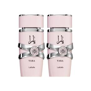 Eau de Parfum Spray Lattafa Yara para mulheres, 100 ml (pacote com 2) - Yara by Lattafa Perfumes é uma fragrância âmbar baunilha para mulheres - Notas principais: orquídea, heliotrópio e tangerina - Notas médias: Gourmand Accord e frutas tropicais - Notas de base: baunilha, almíscar e sândalo - Adequado para uso diário