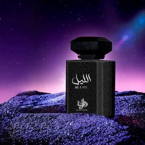 O frasco do perfume reflete a beleza atemporal da fragrância, com suas linhas suaves e um toque de mistério. A embalagem evoca a sensação de um céu estrelado, capturando a essência noturna e romântica do Layl Al Wataniah.