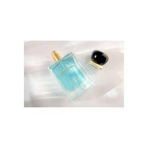 O frasco de cor azul evoca a característica luminosa da água em toda sua pureza e vitalidade