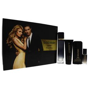 Spray EDT masculino Gold Paris Hilton Gold Rush Man de 3,4 onças, spray EDT de 0,5 onças, sabonete líquido para cabelo de 3,0 onças, conjunto de presente de 4 peças de desodorante sem álcool de 2,75 onças, I0082720