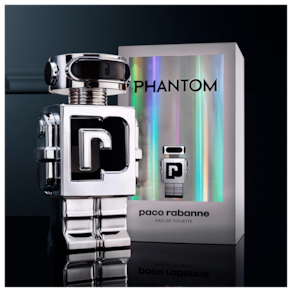 Phantom é um perfume Paco Rabanne masculino aromático. Apresenta um ar futurista, mesclando as visões do trabalho artesanal de luxo e as novas tecnologias.