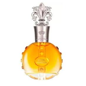 O frasco, harmonioso e luxuoso, é incrustado com pedras preciosas e entre elas, se assenta o selo de Royal Marina.