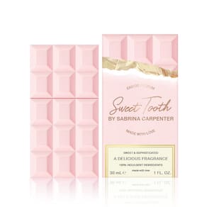 Com sua fragrância de estreia, Sabrina está expandindo sua força criativa em uma nova categoria. Inspirado pelo amor de Sabrina por sobremesas, “Sweet Tooth” de Sabrina Carpenter Eau de Parfum satisfaz os gulosos com uma fragrância boa o suficiente para comer. O aroma é doce, mas sofisticado e lembra a alegria irresistível de uma confeitaria, cheia de chocolate cremoso, toques de cor, espirais e doces. A fragrância gourmand apresenta notas de marshmallow de chocolate, baunilha, creme de chantilly e almíscares açucarados. Doce e pequena, a garrafa é modelada a partir do formato de uma barra de chocolate, mas reinventada em vidro facetado com tons de rosa e ouro rosa. A garrafa brilha com prazer e se torna uma obra de arte para que todos possam desembrulhar e experimentar. “Criar minha própria fragrância sempre foi um sonho. Todo mundo sabe que eu gosto muito de doces, o que foi a inspiração para o perfume. Mal posso esperar para compartilhar essa fragrância com meus fãs.” - Sabrina Carpenter