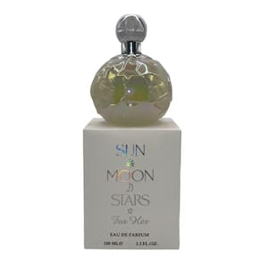 Sun Moon Stars For Her é uma nova edição do nosso portfólio de fragrâncias. Assim como o nome Sun Moon Stars, este perfume a levará para fora deste mundo. Este perfume é para aqueles que são aventureiros e prontos para aproveitar o dia. É uma fragrância frutada doce e potente. O aroma de abertura é um aroma despertador de morangos, seguido de framboesa, cereja azeda e corrente preta. As notas médias deste perfume são Coração de Violeta e Jasmim, com notas de folhas verdes e caxemira quente. O aroma termina com notas de fundo de almíscar, baunilha doce, âmbar e patchouli. Todos juntos, o resultado final é uma fragrância feita para ela. A garrafa é feita de um visual iridescente muito exclusivo, que cria um maravilhoso efeito de cor quando a luz é direcionada para ela. Junto com os símbolos emblemáticos do sol, lua e estrelas, esta garrafa vem com um topo redondo e prateado. O design da caixa reflete perfeitamente o perfume, pois tem uma sensação texturizada com o nome escrito em iridescência prateada.