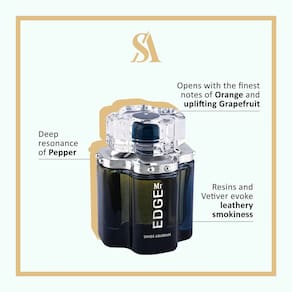Swiss Arabian Mr EDGE — Fragrância em spray EDP pessoal de longa duração e viciante — O aroma luxuoso da Arábia — 3,4 onças — MR EDGE: SEU NOVO PERFUME EXCLUSIVO. Abre com as melhores notas de laranja e toranja revigorante. O coração pulsante da fragrância realça a profunda ressonância de Pepper. Resinas e vetiver dão profundidade ao aroma e inspiram atenção. - QUALIDADE DE EAU DE PARFUM DE LONGA DURAÇÃO. A essência de fragrância superior, duradoura e de alta qualidade. Perfeito para presentear ou usar em uma variedade de situações. Formulado para projeção de aroma de longa duração e intensidade de uso. - UMA FORMULAÇÃO CLÁSSICA COM NOSSAS FRAGRÂNCIAS EXCLUSIVAS. Uma fórmula de fragrância clássica e versátil. Mais adequado para uso diário e ideal para combinar com outras fragrâncias. Ingredientes cuidadosamente elaborados são adequados para pessoas com pele sensível. - A MISTURA PERFEITA DE CULTURAS E PERFUMES. Com um legado enraizado em uma mistura de artesanato ocidental e oriental, a Swiss Arabian é uma marca fundada na dualidade que orgulhosamente celebra o espaço em que dois mundos aparentemente opostos se unem. - UMA EXPERIÊNCIA AROMÁTICA DO OUTRO LADO DOS MARES. Nascidas de origens preciosas e baseadas em muitas conquistas, nossas criações requintadas o levarão a uma jornada aromática dos sentidos que culmina em um momento impecável que encanta para sempre.