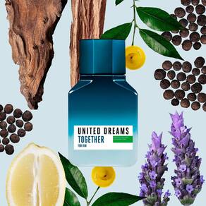 O United Dreams Together Him Eau de Toilette 100ml é uma fragrância masculina amadeirada especiada, lançada em 2019. Sua composição olfativa começa com notas de topo de bergamota, tangerina, zimbro e pimenta-do-reino, proporcionando uma abertura cítrica e picante. No coração, destacam-se notas de lavanda, gerânio, tomilho e um acorde aquoso, conferindo frescor e sofisticação. A base é composta por cedro, fava tonka, âmbar e almíscar, oferecendo profundidade e calor à fragrância .