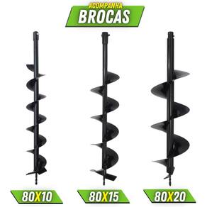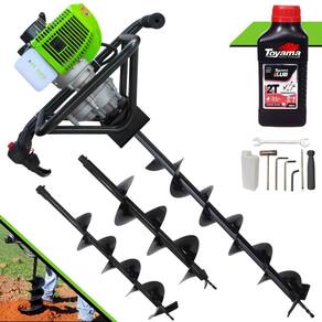 Perfurador De Solo Menegotti MPS52 Á Gasolina 2T 52CC 1,8HP Com Brocas 80x10cm, 80x15cm, 80x20cm + Óleo Toyama FG50 500ml 2T