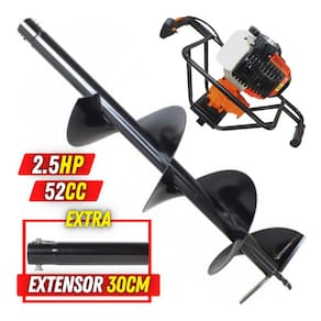 Perfurador De Solo Vulcan Trent VPS520 2T 52CC 2,5HP Com Broca 80x30cm + Extensor de 30cm Robusto, forte e compacto, o Perfurador de Solo Vulcan é a solução ideal para perfurar vários tipos de solo para fixação de estacas e construção de cercas. O motor de 2 tempos com 52cc e 2,5HP de potência permite menos esforço e mais qualidade durante o trabalho. Com sistema moderno e fácil de usar, o aparelho tem capacidade para armazenar até 1,2 litro de gasolina e possui sistema de arranque manual através de mola retrátil. O uso deste equipamento em comparação com perfuradores manuais e cavadeiras articuladas garante muita economia de tempo, eficiência no resultado do trabalho e mais segurança e comodidade para o profissional. O Perfurador de Solo Vulcan tem outras importantes utilidades além da perfuração para colocação de estacas em cercas, já que o uso também é indicado para ajudar no plantio de mudas de reflorestamento de pinus e eucaliptos, em trabalhos e prestações de serviço na construção civil, e ainda na silvicultura (como coleta de materiais para análise de solo). ESPECIFICAÇÕES TÉCNICAS: Modelo: VPS520 Motor: Gasolina 2 Tempos - 25:1 Potência: 2,50 HP ( 1,85kw) - 52cc Rotação: Máxima 11.000 RPM - Na Lenta 3.000 RPM Arranque: Manual com mola retrátil Autonomia: Aproximadamente 1 hora Tanque: GASOLINA: 1000 ml Redução: Taxa de Redução 29:1 Engrenagens: Em aço Temperado BROCA 80x30cm Com Pino Trava Para Perfurador de Solo VPS520 - Broca Para Perfurador De Solo 80x30cm da Vulcan. É indicado para perfurações de solo em silviculturas, floricultura, construção de cercas assentamentos de murões, coleta de materiais para análise de solo e plantio de agricultura. Conta com durabilidade, alta resistência e qualidade. EXTRA: EXTENSÃO 30cm Com Pino Trava Para Perfurador de Solo VPS520 - Uma exclusividade a você. Extensão Para Perfurar Solo. Compatível com o perfurador VPS520 Vulcan. Conta com durabilidade, alta resistência e qualidade. ITENS INCLUSOS NO KIT: 01 Motor do Perfurador, 01 Dosador de Combustível, 01 Jogo de Chaves, 01 Broca 80x30cm, 01 EXTRA: Extensão 30cm e Manual.